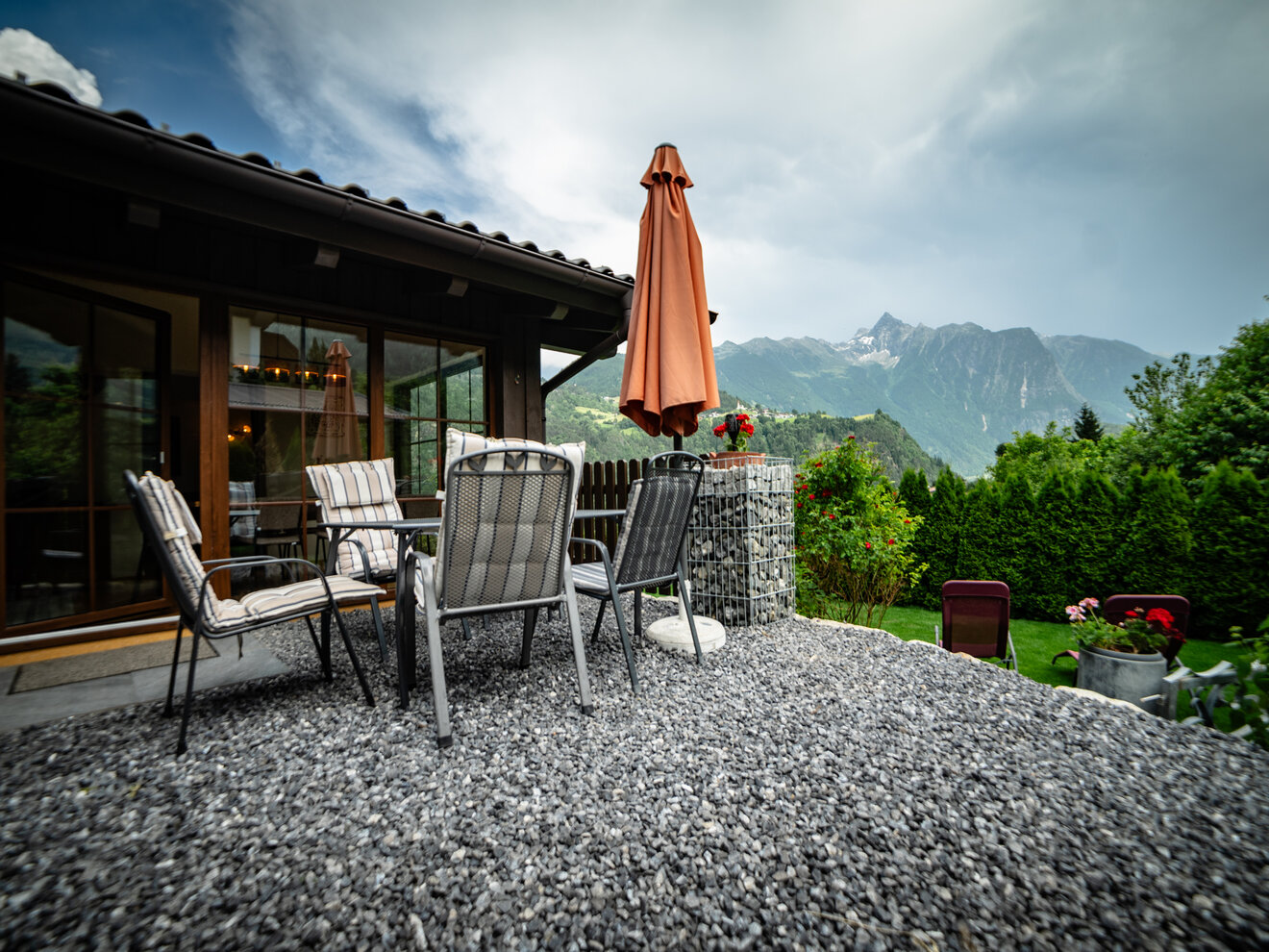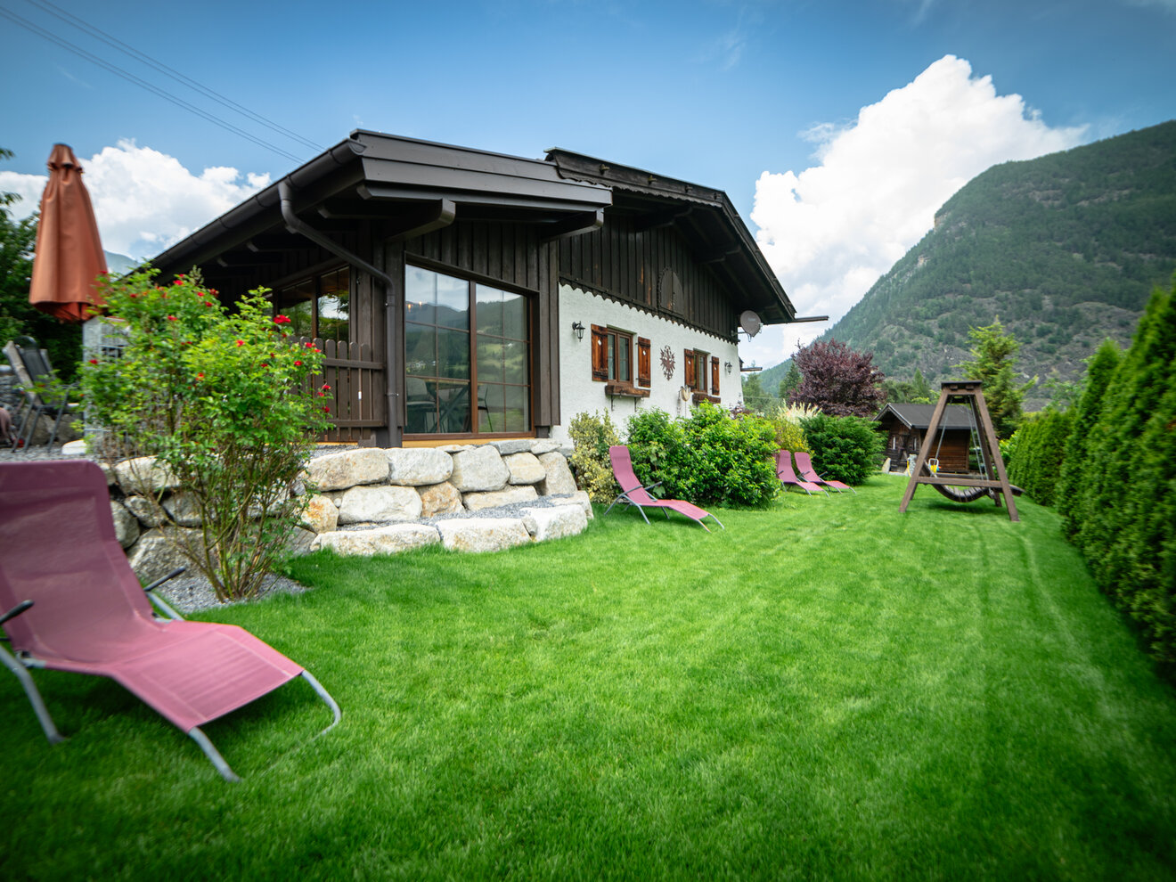 Unser neu renoviertes Ferienhaus steht in wunderbarer freier und ruhiger Lage mit direktem Blick auf die Bergwelt des vorderen Ötztales und den 3008 m hohen Acherkogel.